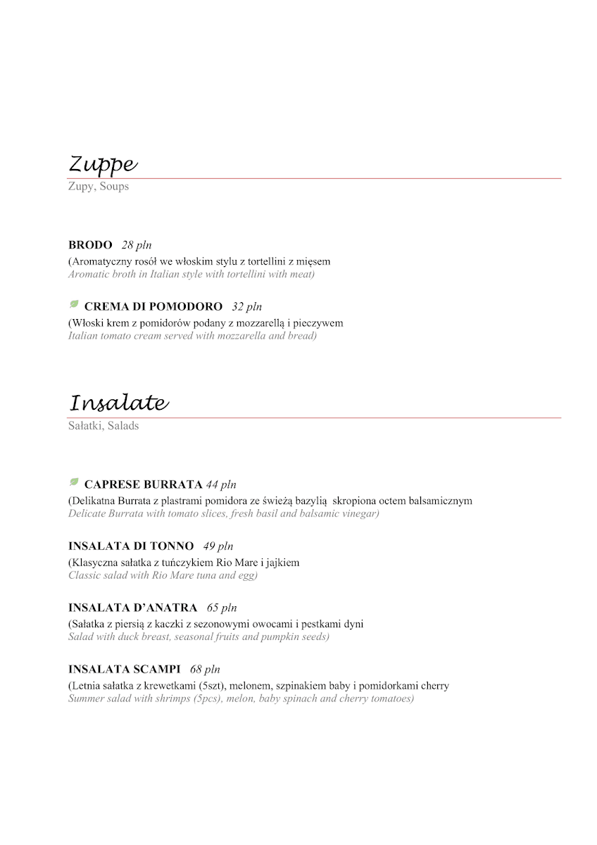 The inviting setting, which includes a charming garden space, encourages guests to enjoy these dishes at a comfortable pace, whether sharing a midday meal or settling in for an evening of quiet conversation. The menu’s approachable nature fits well with the restaurant’s calm atmosphere, where attentive service and thoughtful flavors bring a little taste of Italy to everyday moments in Sopot.